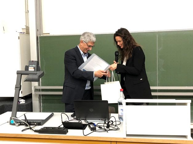 Geschenkübergabe von Frau Prof. Dr. Steul-Fischer an die Referentinnen der NÜRNBERGER Versicherung Frau Stefanie Müller (Mitarbeiterin im Innovationsmanagement), Frau Anne Schütter (Mitarbeiterin im Innovationsmanagement).