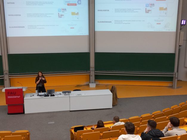 Am 6. November 2023 hatten wir das Vergnügen, Frau Jessika Dil von adesso SE im Hörsaal 2 der FAU Wiso zu begrüßen. Ihr Gastvortrag zum Thema „Den Kampf um den Kunden hat der Kunde gewonnen – Der Erfolgsfaktor Customer Experience“ beleuchtete die herausragende Bedeutung von Kundenerfahrungen und deren Management. Frau Dil präsentierte anschauliche Fallbeispiele aus der Welt der Haustierversicherungen und Streamingdienstleister und gewährte spannende Einblicke in ihren Berufsalltag als Beraterin für Digitale Transformation und Customer Experience. Der Vortrag diente als inspirierende Quelle wertvoller Erkenntnisse für die rund 200 interessierten Studierenden, die im Rahmen des Bachelor-Einführungsmoduls „Marketing & Customer Insights“ an der Veranstaltung teilnahmen.